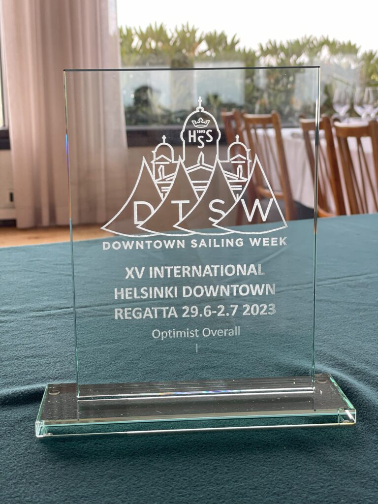 Tapahtuman voittajalle luovutettiin DownTown Sailing Week Saalasti Optimist Trophy joka sijaitsee nähtävilla upean ravintolamme tuloaulassa. Trophyn suunnittelussa ja toteutuksessa on ollut mukana Suomen ammattitaitoisimmat suunnittelijat ja hopeasepät.