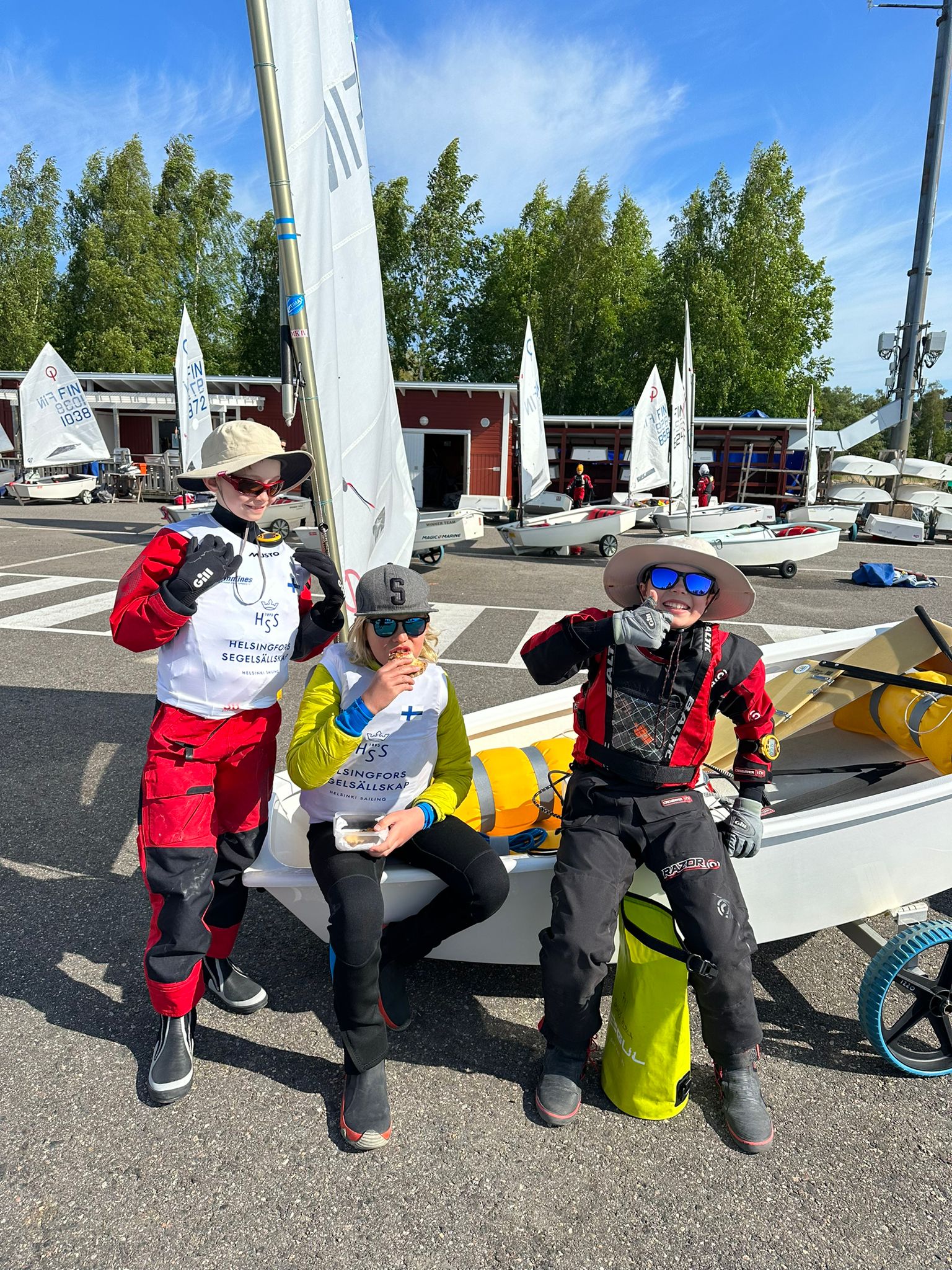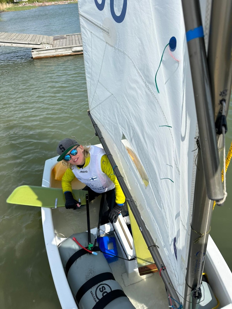 ”Meitä oli mukana kadettiryhmästä mä ja Lucas ja Joel ja Muusa, Tuovi, Rasmus ja Erik. Ekana kisapäivänä oli aika huono tuuli: se oli siinä ainakin loppuvaiheessa ihan pläkä ja sitten tota ja sit se shiftas taas ihan sikana mutta silloin ekana päivänä mulla meni lähdöt ihan OK ja pääsin kaikki maaliin.