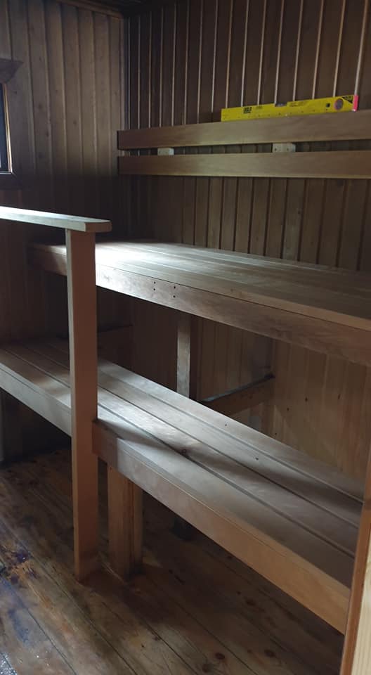 - Jokaisen tulee itse sahata ja pilkkoa puut omaa saunavuoroaan varten. Tee se ennen kuin kukaan muu on saunassa. On huomattavaista tehdä myös hieman ylimääräisiä puita.