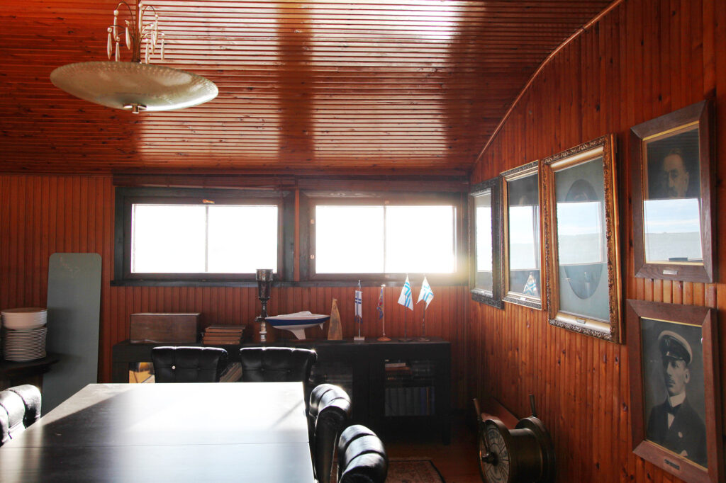 Huoneen seiniä komistavat seuran kommodoreiden eli hallituksen puheenjohtajien kuvat yli sadan vuoden ajalta. Tilassa on paljon upeita historiaa kertovia esineitä. Huoneen pyöreästä ikkunasta aukeaa näkymä ravintolan saliin. Ravintolasta on mahdollista tilata ruokia ja juomia huoneeseen tai käydä välillä vaikka ravintolan terassilla syömässä. Huoneen vieressä on erillinen keittiö, jossa on mahdollista valmistaa ja säilyttää omia eväitä.