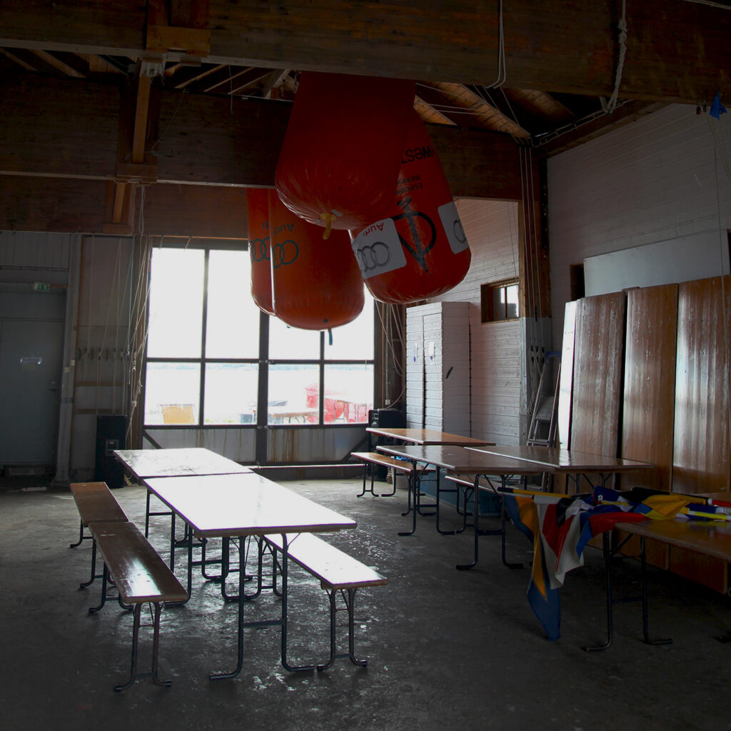 Länsivajassa on valmiina pitkiä puisia, kokoon taittuvia pöytiä sekä penkkejä. Tila toimii aktiivisesti purjehdusseuran käytössä ja siellä säilytetään esimerkiksi kisoissa käytettäviä ratamerkkejä ja kuivataan purjeita. Tila muuntuu moneksi ja vain juhlijan mielikuvitus on rajana. Somistamalla tilasta saa moneen eri tunnelmaan ja tilaisuuteen sopivan. Tilassa on sähköt ja tarjoiluissa voi käyttää apuna erillistä huonetta, ns. catering keittiötä, josta löytyy laskutilaa (pöytiä) sekä hyllyjä ja muutama jääkaappi. Tilassa ei kuitenkaan ole juoksevaa vettä vaan lähin vesipiste löytyy päärakennuksesta. Lähin WC löytyy myös päärakennuksesta.