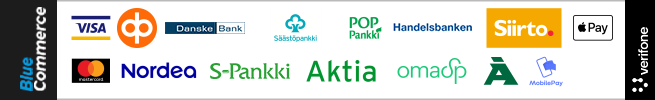 Kaikki tilaukset maksetaan etukäteen tilauksen yhteydessä verkkokaupassa valittavilla maksutavoilla. Maksut käsitellään turvallisesti kolmannen osapuolen, Verifone Finland Oy:n, kautta. Maksupalvelun tarjoaa Verifone Finland Oy, joka on Finanssivalvonnan toimiluvan saanut maksulaitos. Maksutapahtumat toteutetaan Verifone Finland Oy:n suojatussa tietoturvallisessa maksuympäristössä.